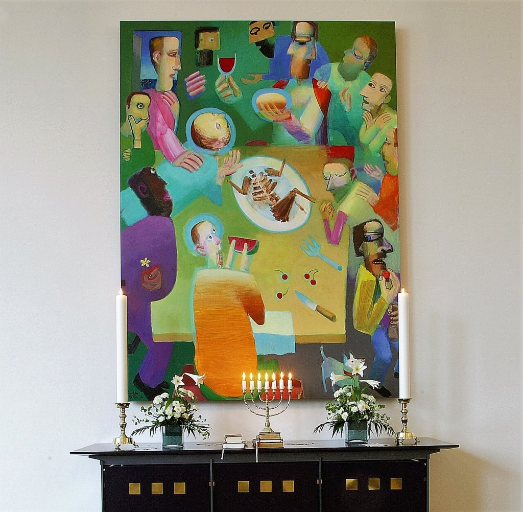I grunden kan ethvert nadverbillede være en ‘illustration’ af dette evangelium. I nutiden er Arne Haugen Sørensen en af de kirkekunstnere, der skildrer måltidsfællesskabet aldeles uden idealisering af deltagerne: Der er uden tvivl slyngler til bords, der er anarki og mange dagsordener. Det fællesskabsstiftende er og bliver netop tilgivelsen. Det viste maleri er Arne Haugen Sørensens alterbillede fra 2004 til Herning Valgmenighedskirke, fundet på kirkens hjemmeside. Kunstneren har også udsmykket kirkens ruder.