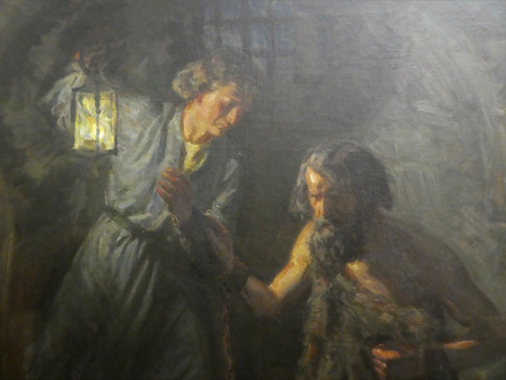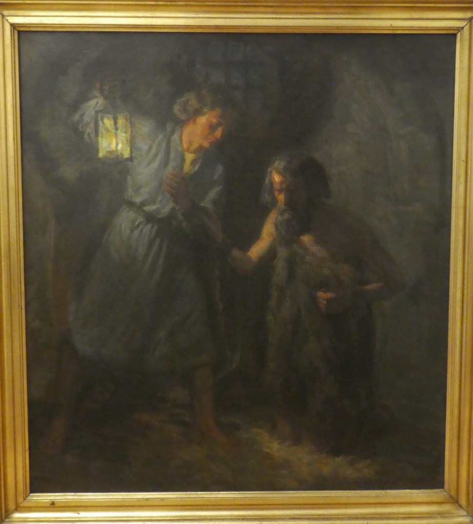 Det stærkeste billede, en dansk kunstner har malet til dagens tekst, hænger i Vartovs præstebolig. Den psykologisk indtrængende scene blev malet i 1915 af Rudolf Rud- Petersen (1871-1961). Johannes Døberen knæler på gulvet i den mørke fængselscelle. Han griber om disciplens arm og samler al indre opmærksomhed i spørgsmålet til Jesus. Rummets eneste lyskilde er disciplens lygte. Kan vi læse billedet sådan, at Johannes skal modtage et indre lys? Vil sendebuddet komme tilbage med et svar, som gør mørket udholdeligt?