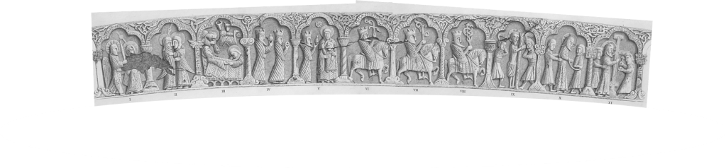Nederst ses alle billedrækkens elleve scener fra Maria Bebudelse over Besøgelsen hos Elisabeth, Jesu fødsel i stalden, De hellige tre konger – og frem til Jesu lidelseshistorie. Her få julen altså lov at ‘vare lige til påske’.