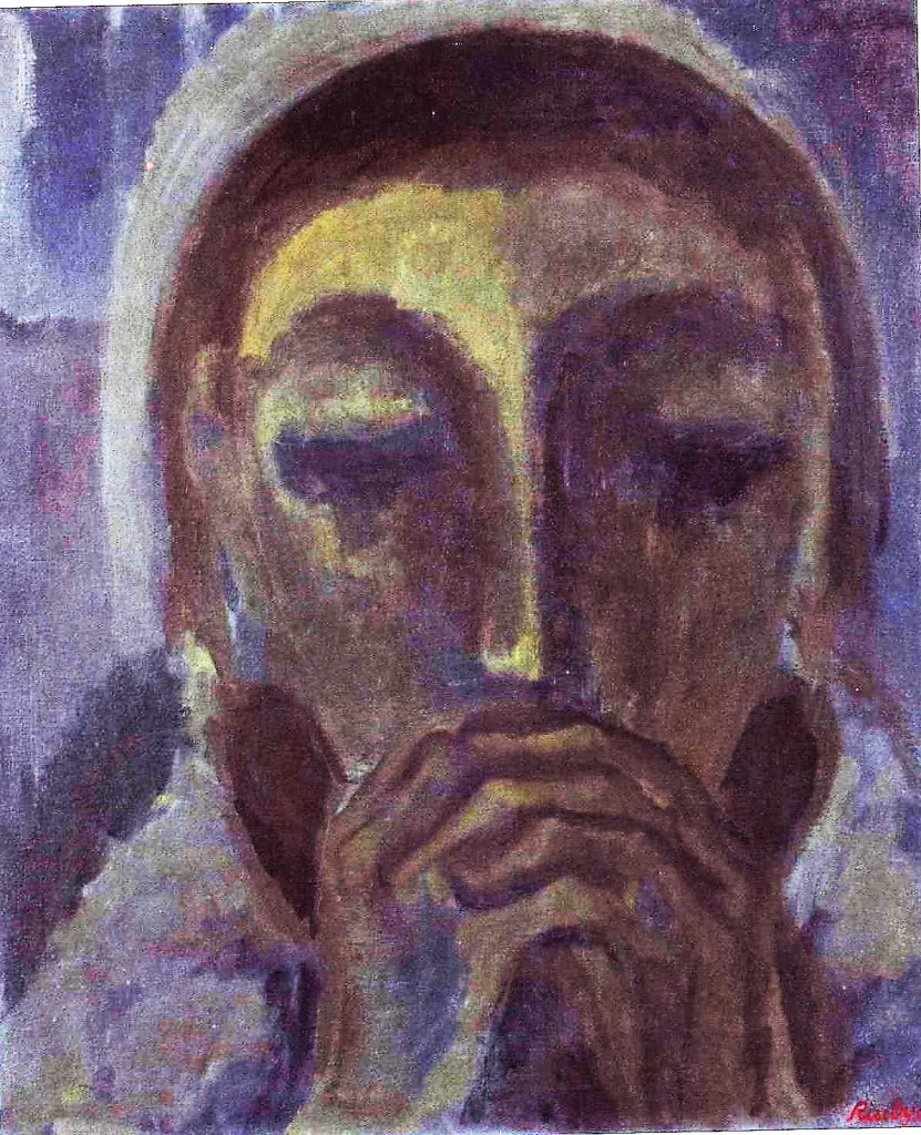 Her vises et egenartet billede af bøn fra 1934, som er malet af professor Elof Risebye, der levede 1892-1961. I sin meget personlige kunst skabte Risebye meditative, ikon-agtige billeder af bøn. Her byggede han så at sige en bro mellem troens praksis og troens genstand ved en malerisk syntese af det bedende menneske og Kristusbilledet med et forbindende lysskær. Der er ikke tale om nogen helgengørelse af mennesket, men om en malerisk synliggørelse af den nåde fra Kristus, som oplyser den bedende oppefra eller indefra. Det viste maleri er i privateje.