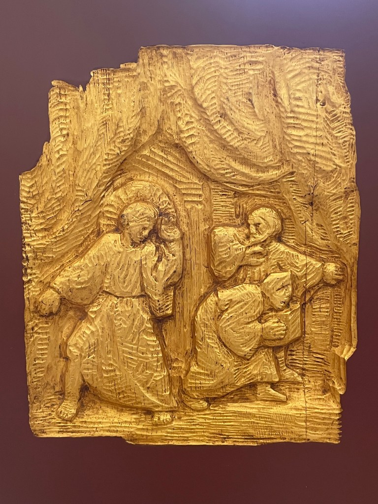 Her vises Valdemar Foersom Hegndals udtryksfulde, moderne træskærerarbejde med Jesu uddrivelse af templets kræmmere og vekselerer som motiv. Relieffet er et af mange med forskellige gammel- og nytestamentlige motiver, der siden 1952 har prydet bænkegavlene i Sønder Vissing Kirke mellem Silkeborg og Horsens. Reliefferne fortjener hver især, at man dvæler ved dem. Valdemar Foersom Hegndal (1916-2002) var uddannet billedskærer og virkede som lærer på Kunstakademiet. Han er ophav til kunst i op imod en snes danske kirker, også vældige alterudsmykninger af stor skønhed og originalitet. Foto: Claus Jensen.