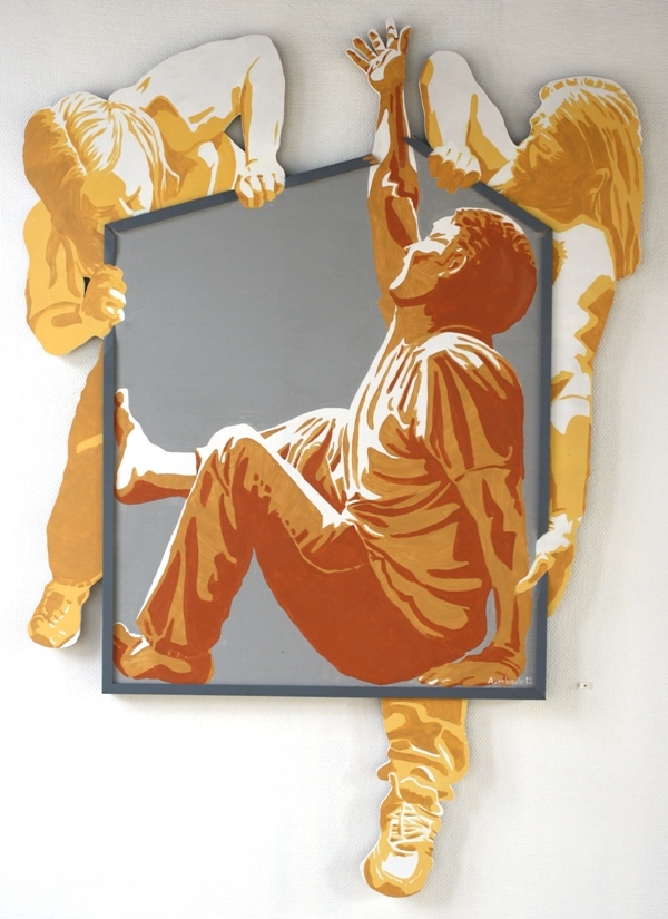 Karsten Auerbach (f. 1961) er en egenartet kunstner med et formidabelt tegnetalent, kreative teknikker og et idealistisk, socialt engagement, der også rækker ud over den hjemlige komfortzone. Han er bl.a. præmieret for en indsats i den 3. verden. Nogle af hans billeder er bogstaveligt talt grænsesprængende ved at lade motiver gå ud over rammens kant. Man kan tolke nogle af hans værker som en forkyndelse af evangeliet. Jeg har i denne sammenhæng valgt Auerbachs maleri “Befrielse”, som viser, hvordan et menneske med aktive venners hjælp bæres og befries fra sin snærende ramme. Den mandlige person, som ude fra højre side bryder rammen itu, er med halvlangt hår og skæg måske en Kristusfiguration. Karsten Auerbach har bl.a. udstillet på Galleri Emmaus i Haslev.
