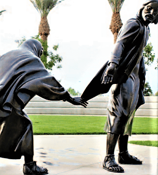 Alan Collins bronzeskulptur “Who touched me?” fra 2010, på det adventistiske universitet Loma Linda i Californien.