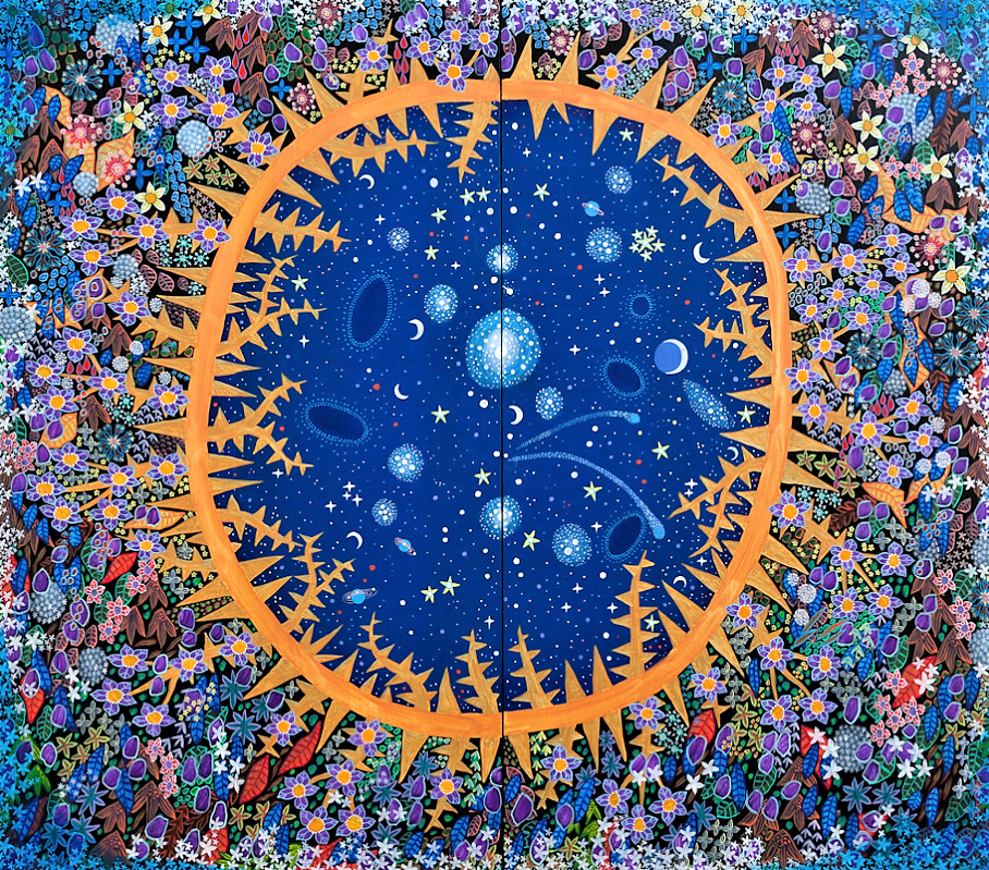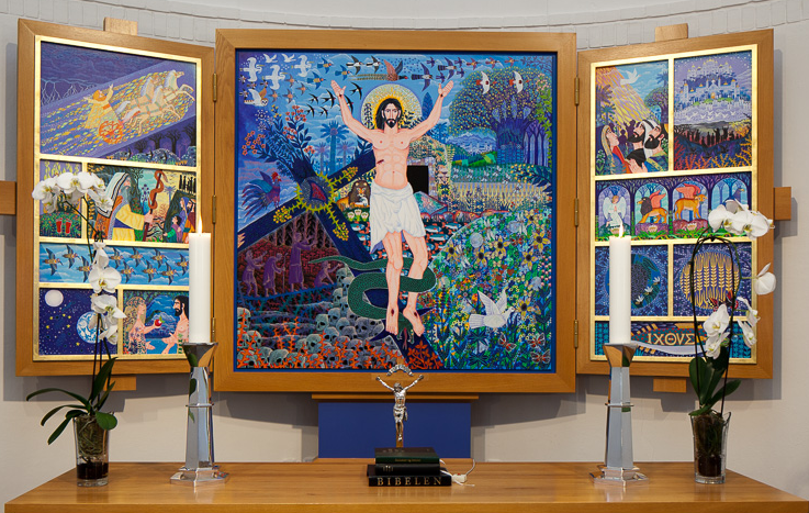Esben Hanefelts første altertavle er Hadsund Kirkes triptykon fra 1998, som i hovedfeltet bærer et jublende opstandelsesbillede, på fløjene flere bibelske motiver og kirkelige symboler. Når tavlen er lukket, ser vi i midten en stjernehimmel, omkranset af en gylden tornekrone. Hermed identificeres den skjulte skabergud som Guds Søn, der blev fornedret og ophøjet. Uden for tornekronen myldrer det skønneste blomsterflor som en fryd for øjet og en hyldest til livets Gud. Tak til Niels Clemmensen for foto.