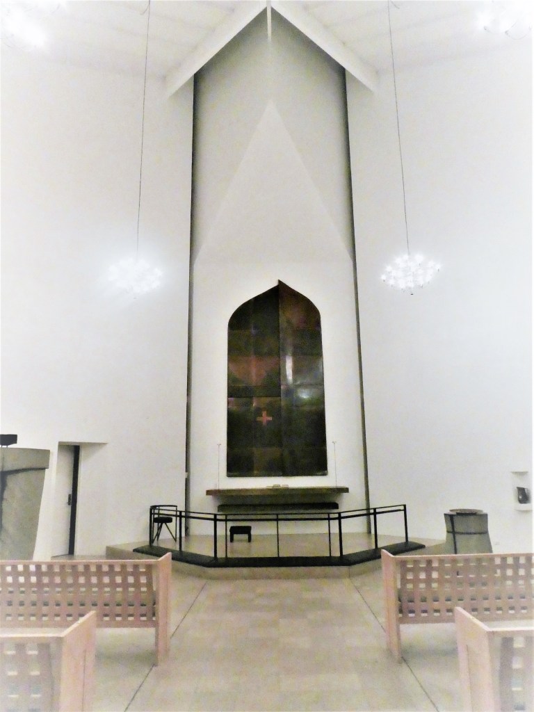 Håbefuldt byder vi det nye kirkeår velkommen med et billede af “Håbets port”. Multikunstneren Hans Berg (1938-2010) skabte i 1989 den smukke udsmykning på Lystrup Kirkes altervæg. Den enkle, asymmetriske ‘altertavle’ af patineret kobber er prydet af et lille forgyldt kors, som giver håbet retning. Foto Claus Jensen.