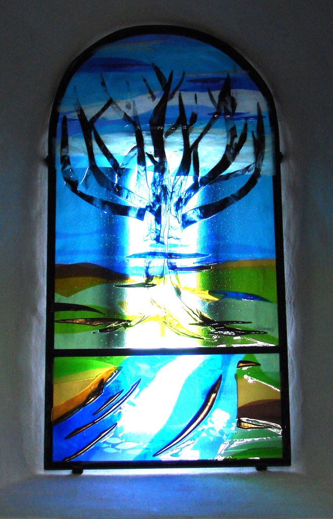 Fra den danske guldalder, begyndende med Eckersberg altertavle fra 1815 i Horne Kirke, har de fleste danske kirkekunstnere malet henrivende billeder af Jesus med små børn: billeder hvor et mylder af børn bliver velsignet, eller billeder, hvor Jesus fremviser et barn, svarende til dagens tekst: ”Den, der ydmyger sig og bliver som dette barn, er den største i Himmeriget”. Det trendy i at male børn på danske altertavler, skyldes dels Rousseaus (d. 1778) indsats for at forstå børn som fuldgyldige mennesker i deres egen ret og ikke blot som ufærdige ikke-voksne, dels guldaldermalernes nye færdighed i faktisk at male mennesker o.a. på grundlag af omhyggelige iagttagelser tilsat lidt idealisering.- I guldalderens eftertid blev maleren Carl Bloch (d. 1890) den epokegørende bibelhistoriefortæller med talent for at male bibelske situationer som en kombination af genrebilleder og en art metafysisk illusionisme med overnaturligt lys om frelseren. Carl Bloch malede i 1873 til Holbæk Kirke altertavlen med motivet ’Jesus viser et barn’, som vises her. Det anonyme barn med palmegrenen i hånden fremtræder troværdigt i sin undselighed, stående ved siden af en frontal glorieret Kristus, der dominerer med et ufravendt, direkte blik på menigheden. På Kristi anden side ses en næsten frygtindgydende, massiv søjle som symbol for aksen mellem himmel og jord. De alt for hvide klædninger bidrager til at sprænge genrebilledets ramme og gøre billedet sakralt. I Aså Kirke, Brønderslev, har Carl Blochs dygtige, mig ubekendte kopist tidligst i 1880’erne gjort motivet lidt mere jordnært ved at give barnets tøj en lyseblå farve. Foto: Claus Jensen.