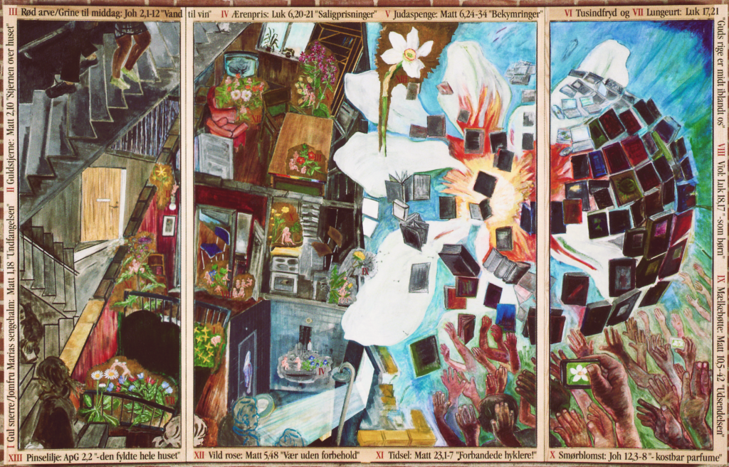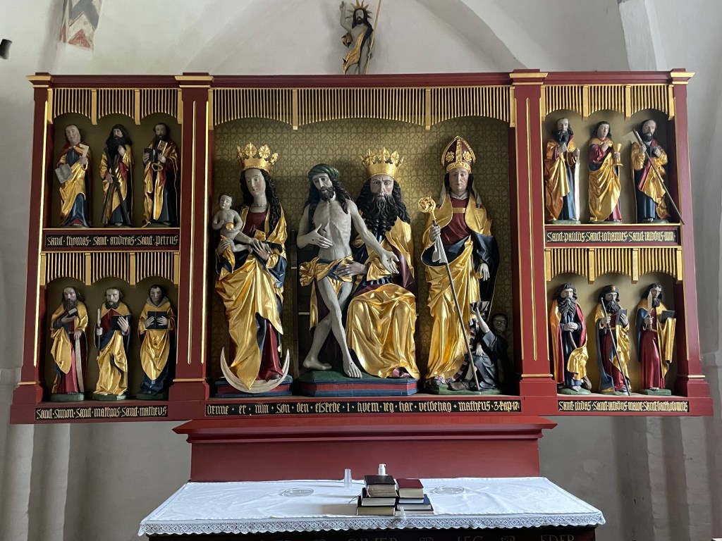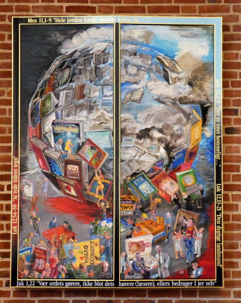 Ret mange af vores døbefonte bærer et relief af Jesu dåb og således et minde om prædikanten og vandbæreren Johannes, der øste vand over Jesus og for altid gav ham ordet. – Bertel Thorvaldsen arbejdede i Rom fra o. 1815 på sin firesidede font med bl.a. det klassiske relief af Jesu dåb. Vi kan studere fonten i marmor i Brahetrolleborg Kirke og i Helligåndskirken på Strøget, foruden i gips på Thorvaldsens Museum. Der findes yderligere to lidt senere versioner, hvoraf den ene angiveligt endte hos Jarlen af Caledon (?), og den anden i en kirke på Island. Det forlyder, at Thorvaldsen ville fremstille denne reliefprydede døbefont til kirken i sin far Thorvaldur Gottskalkssons islandske fødesogn Miklabæ, men måske ombestemte sig. I hvert fald er det nu i Reykjaviks Katedral, en islandsk Thorvaldsen-font har kunnet ses siden 1839. Med den smukkeste marmorblok er det måske den mest vellykkede af alle versionerne. Her bringer jeg et foto af Thorvaldsens døbefont fra den side, der viser Jesu dåb. Relieffets enkle komposition med de harmoniske og kraftfulde skikkelser er en fryd for øjet. Døberen bærer martyrkorset i sin venstre hånd og løfter den højre med muslingeskallen højt over den beslutsomme Jesus, der tager imod med bøjet hoved. Åndens nærvær med duen som symbol er udeladt her, men hele situationen er beåndet. I baggrunden ser vi noget sløret den danske guldaldermaler Th. Wegeners alterbillede fra 1847 med visionen af Jesu sejr over døden som motiv. – I Døberens ånd løfter vi nu sindet til ”den, der kommer fra himlen”. Og til jul sker det.